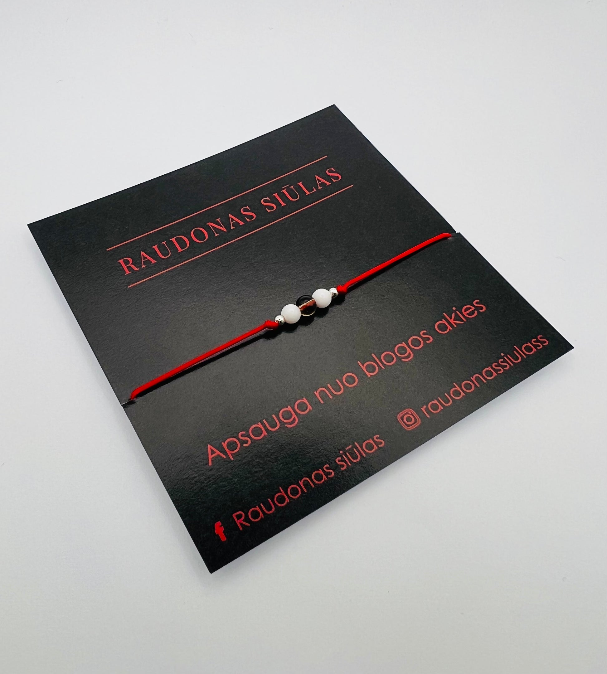 Raudonas siūlas – senovinis apsaugos simbolis, saugantis nuo blogos akies ir neigiamų minčių. Kartu su šiais akmenimis jis sustiprina apyrankės energetinį poveikį, paversdamas ją stipriu talismanu kasdienai.